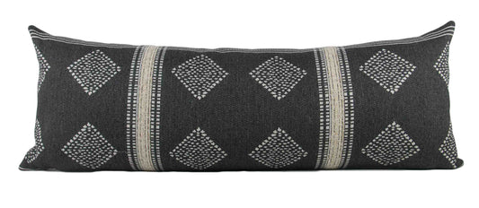 Charcoal Grey & Cream Tribal Pillow Cover, 14x36" long lumbar