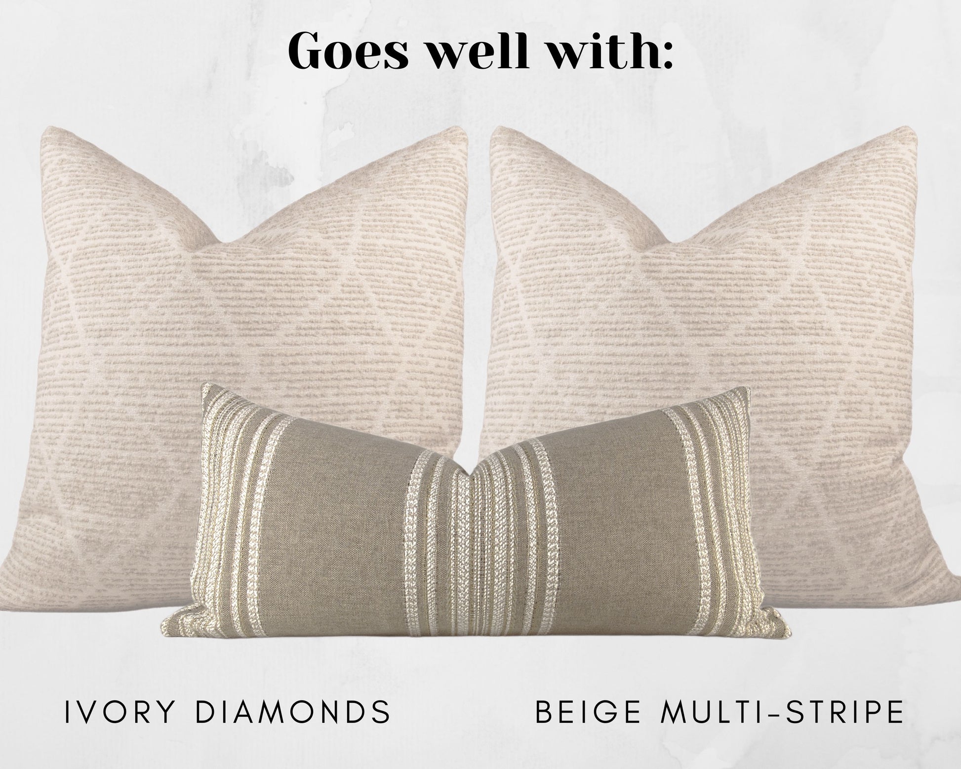 This lumbar pillow cover has been made with care using a beige striped textured fabric. Featuring a timeless beige striped design with accents of cream and golden wheat, it effortlessly blends into any decor.