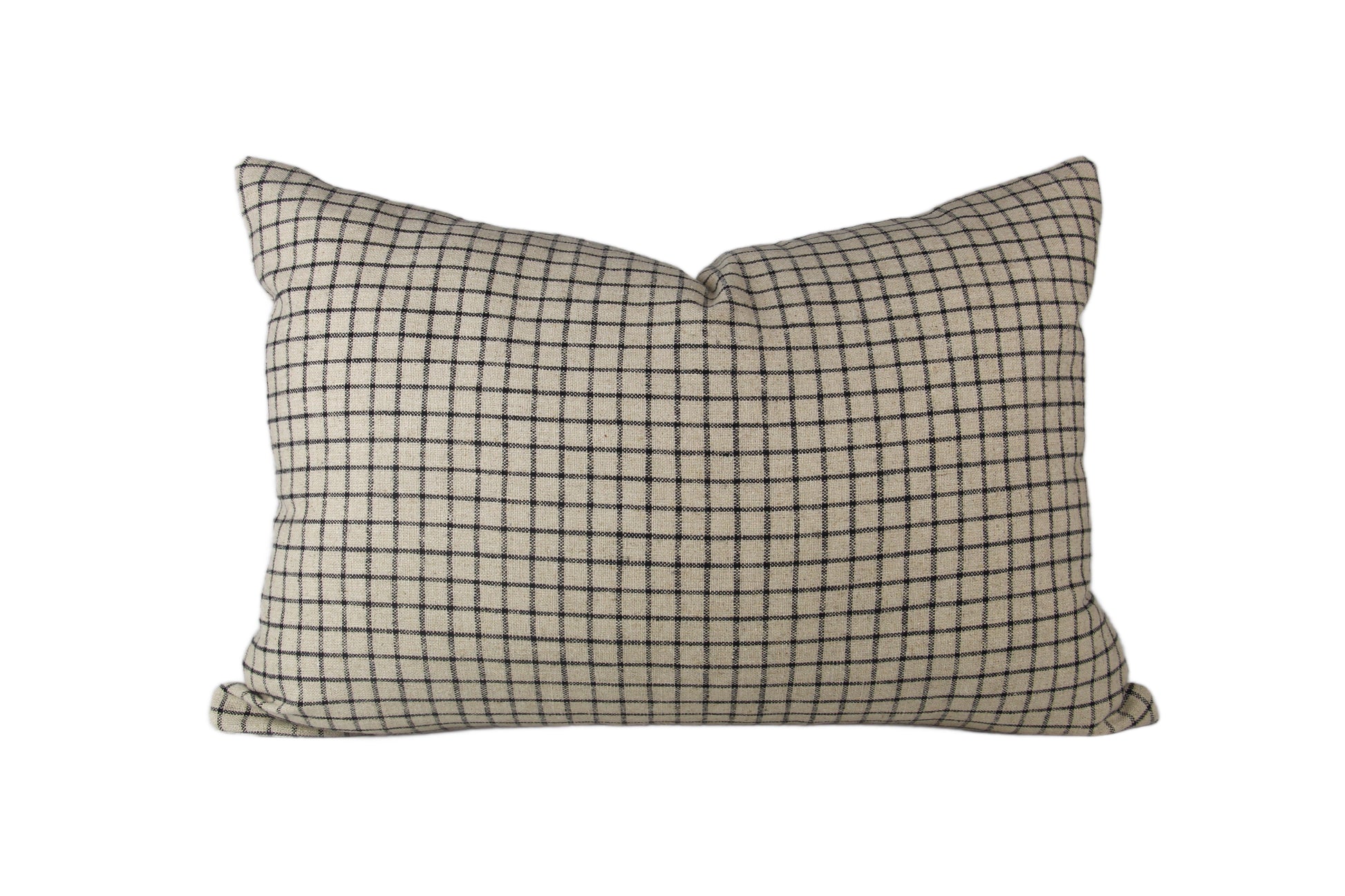 This lumbar pillow cover has been made with care using a black & tan check fabric. The warm neutral tones will add interest to your space while mixing well with other neutrals.