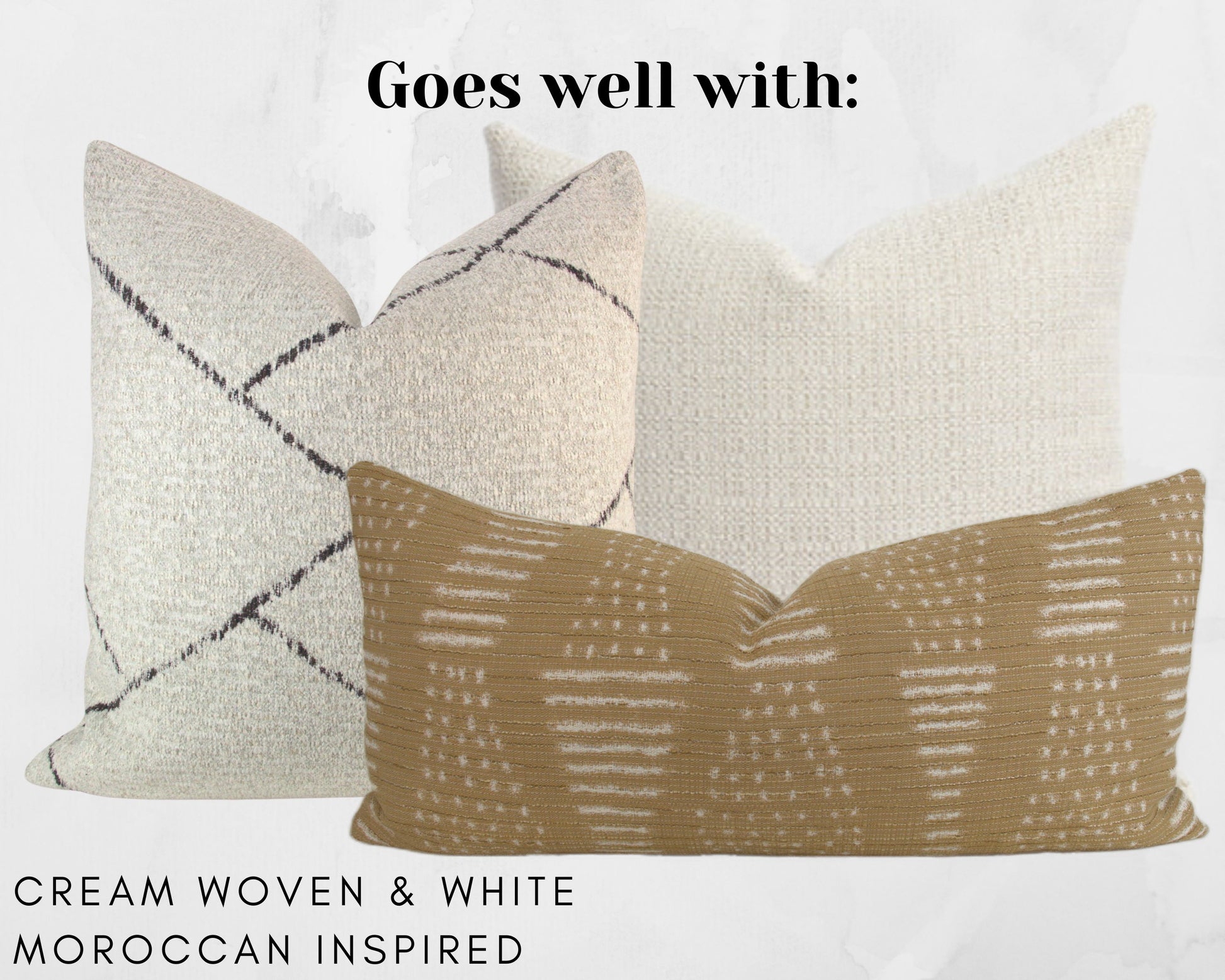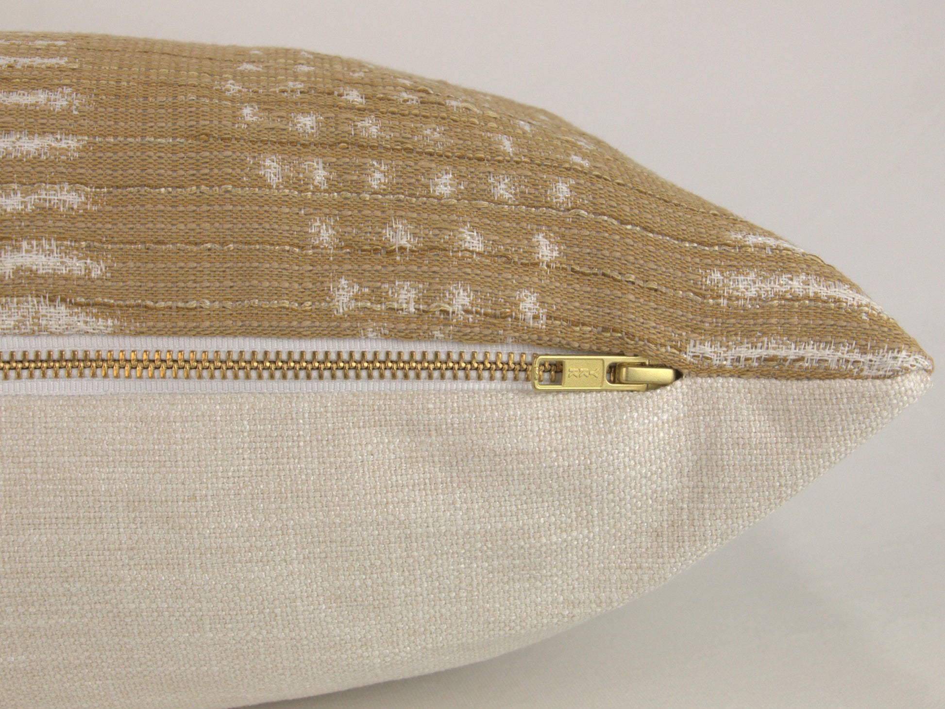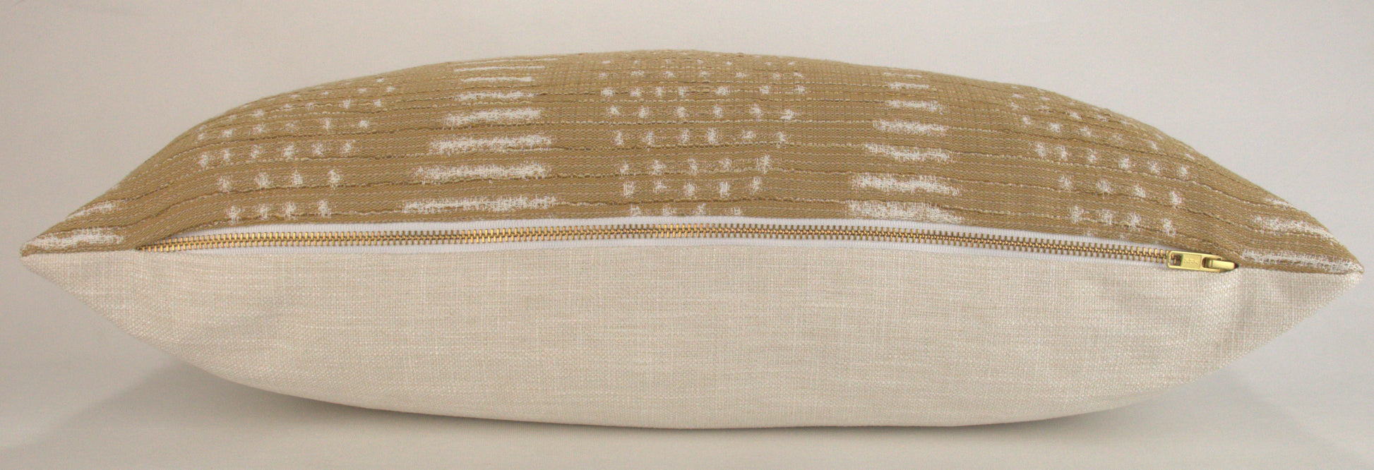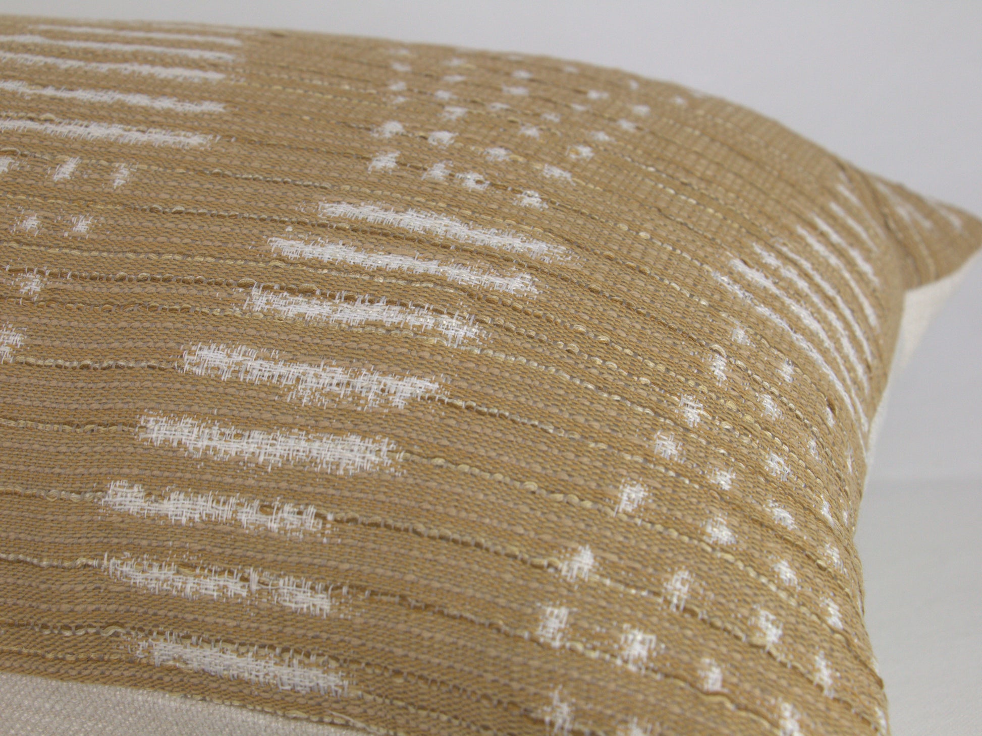 This 12x24" lumbar pillow cover has been made with care using a camel and white tribal pattern fabric. The warm tones blend well with other neutrals - perfect for adding texture and interest to any space.