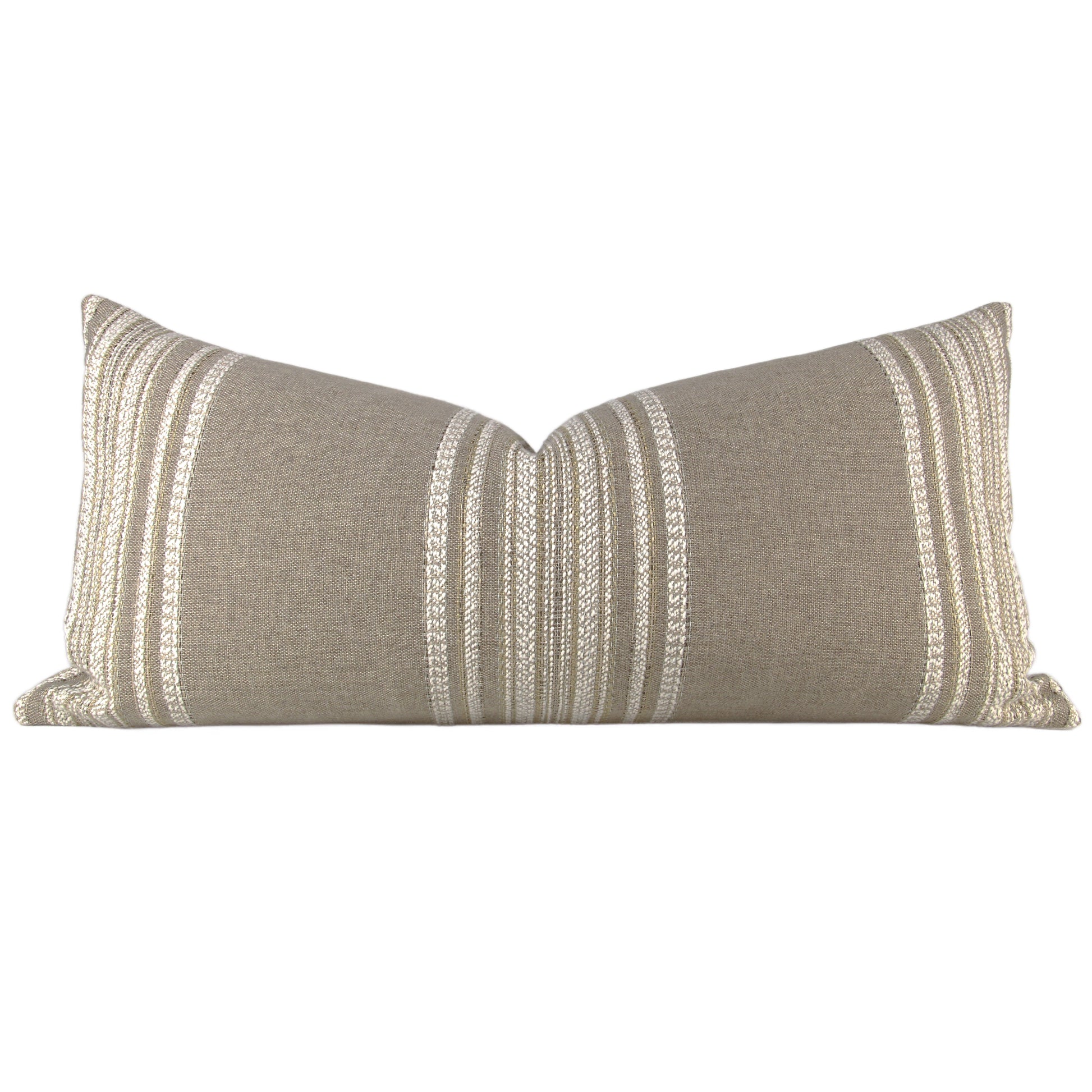 1 - Beige Multi-stripe lumbar pillow cover (choose 12x20", 12x24" or 14x20")