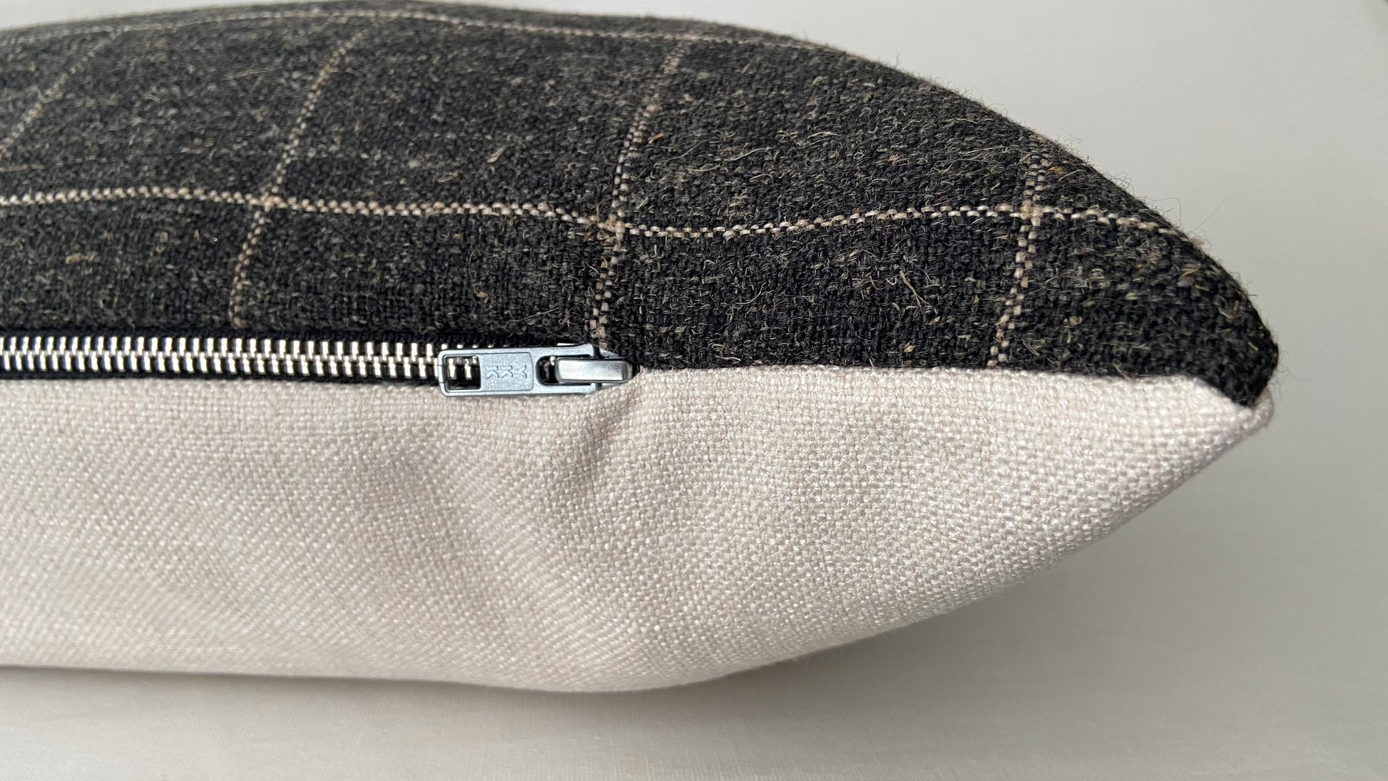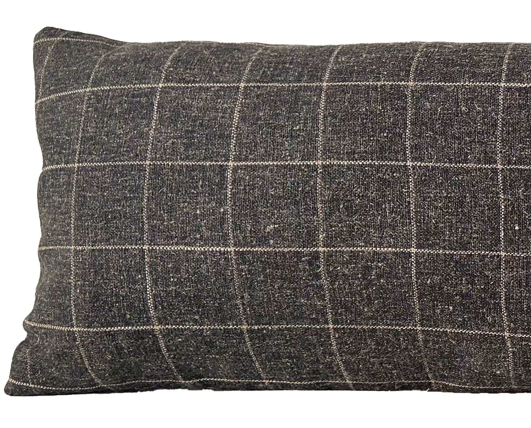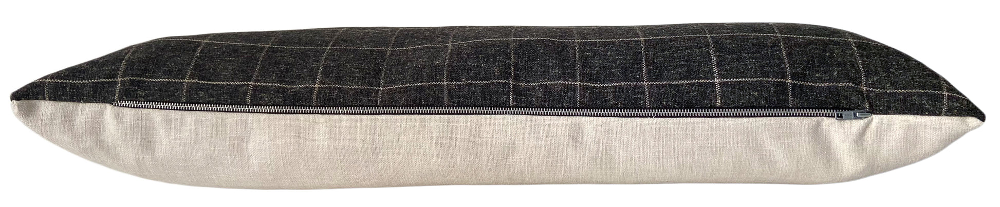 This 14x36" long lumbar pillow cover has been made with care using a charcoal & cream check fabric with tons of texture. It's got a woolly, slightly masculine feel that adds interest but can easily blend with other patterns.