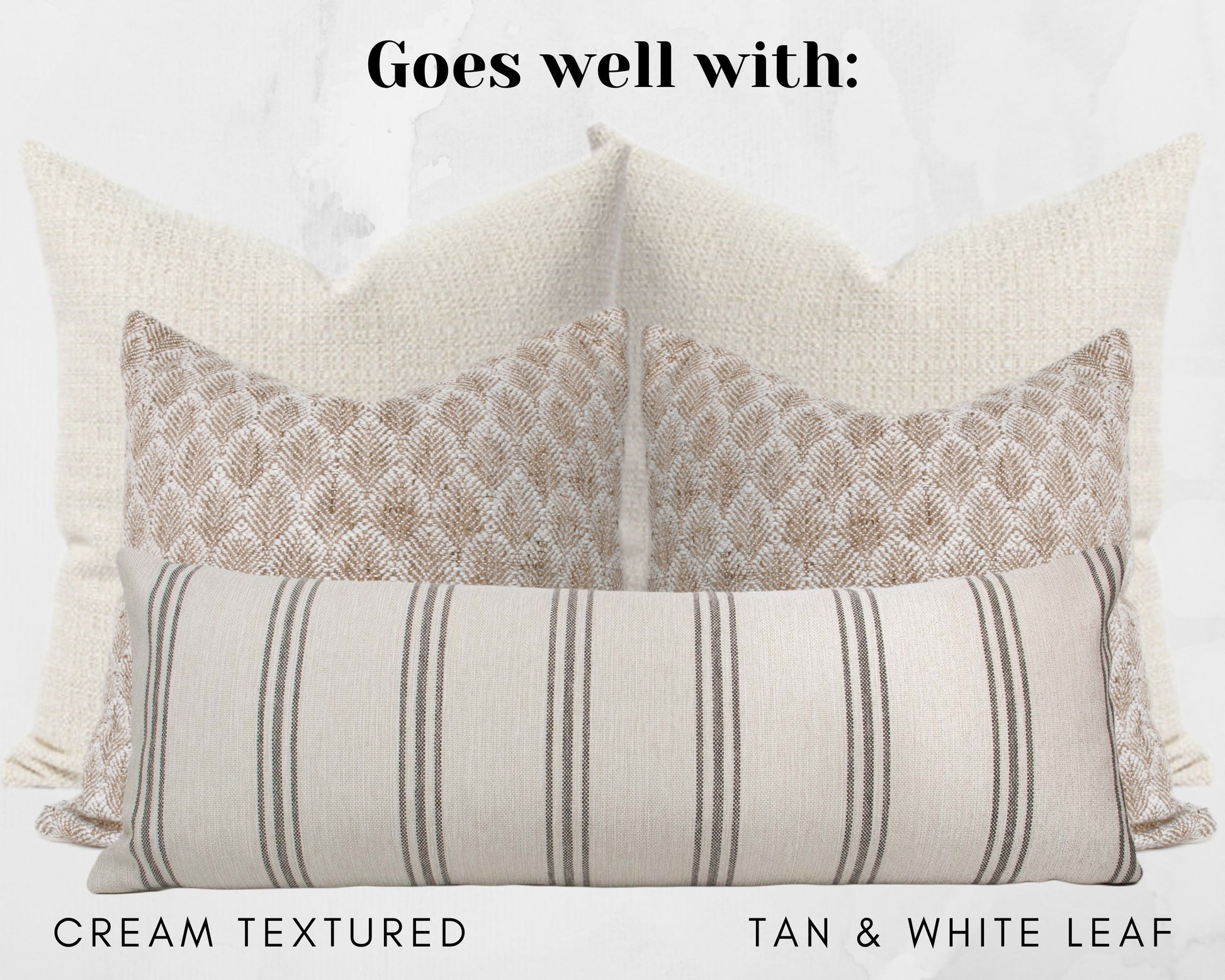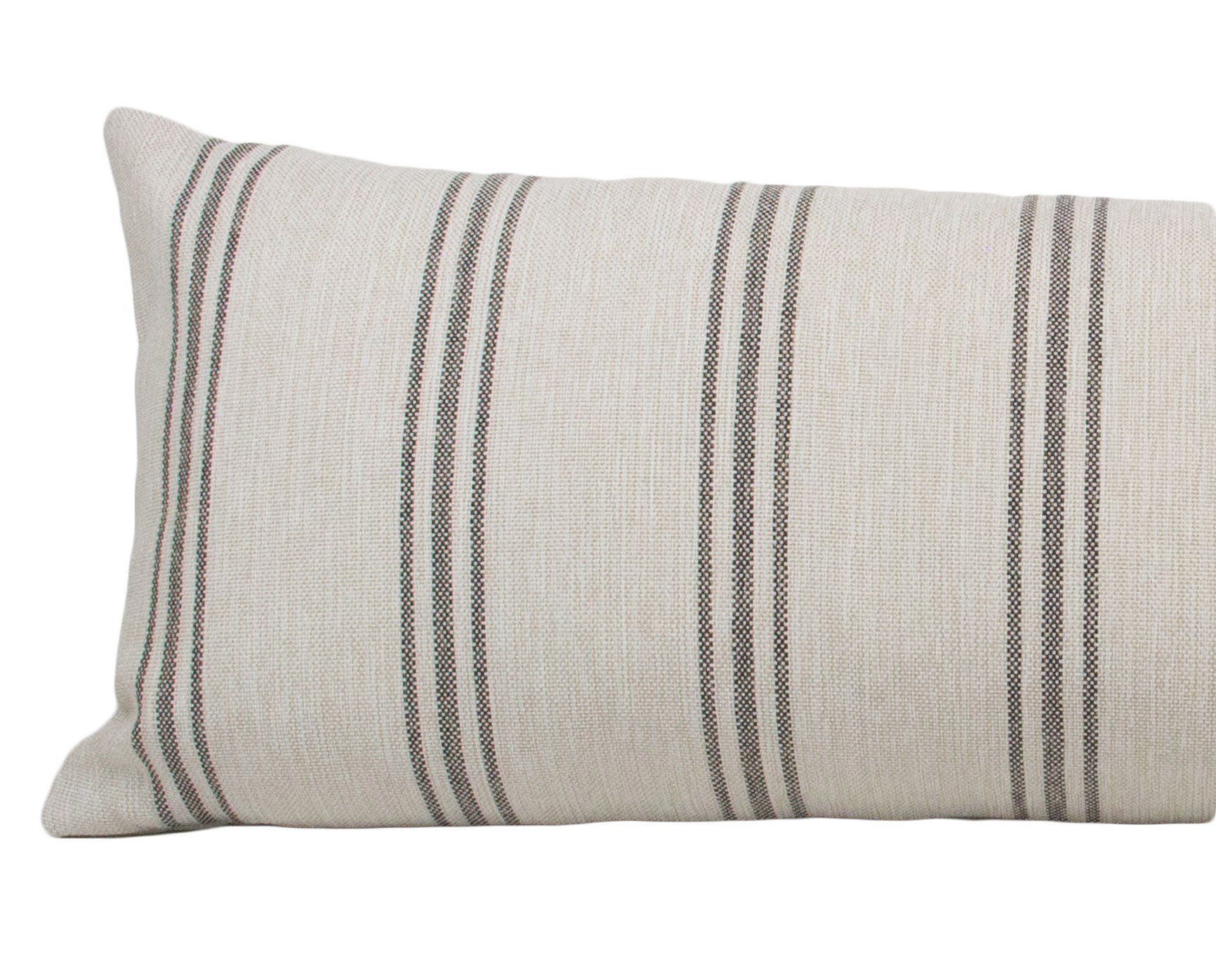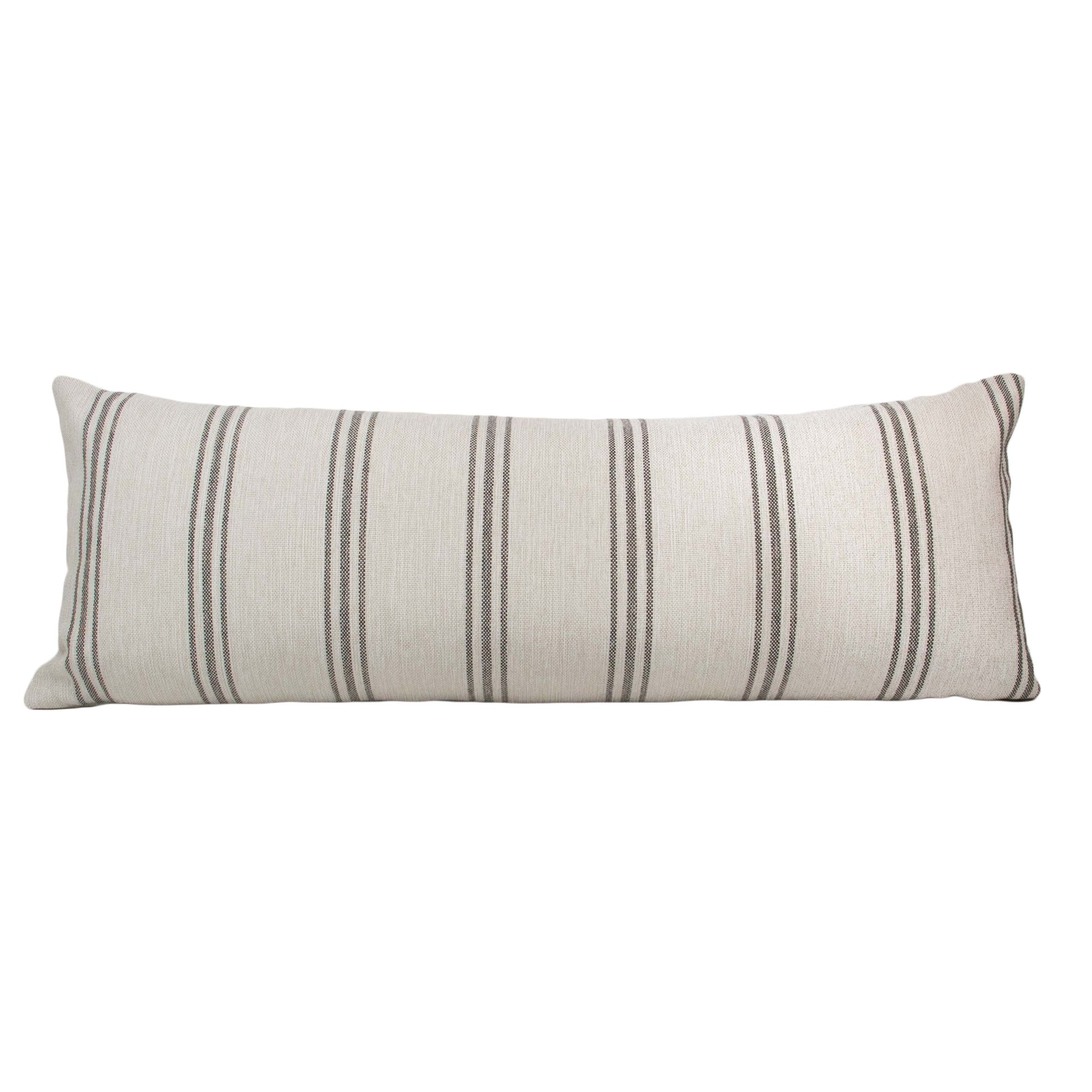 This 14x36" extra long lumbar pillow cover has been made with care using a modern cream woven fabric with soft black stripes.