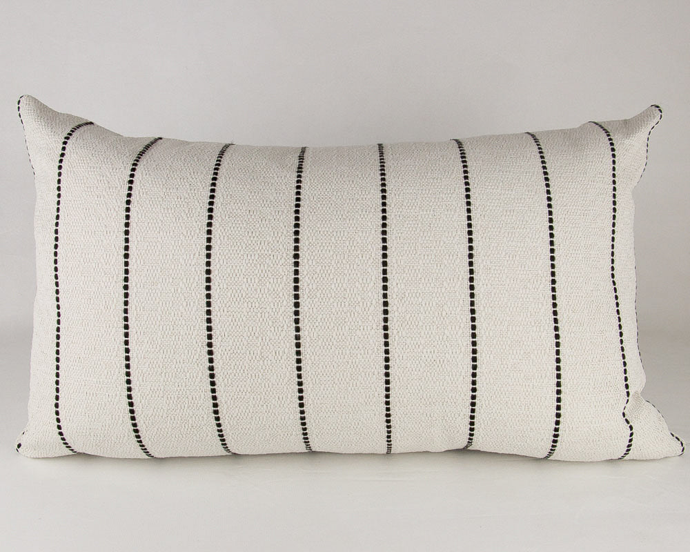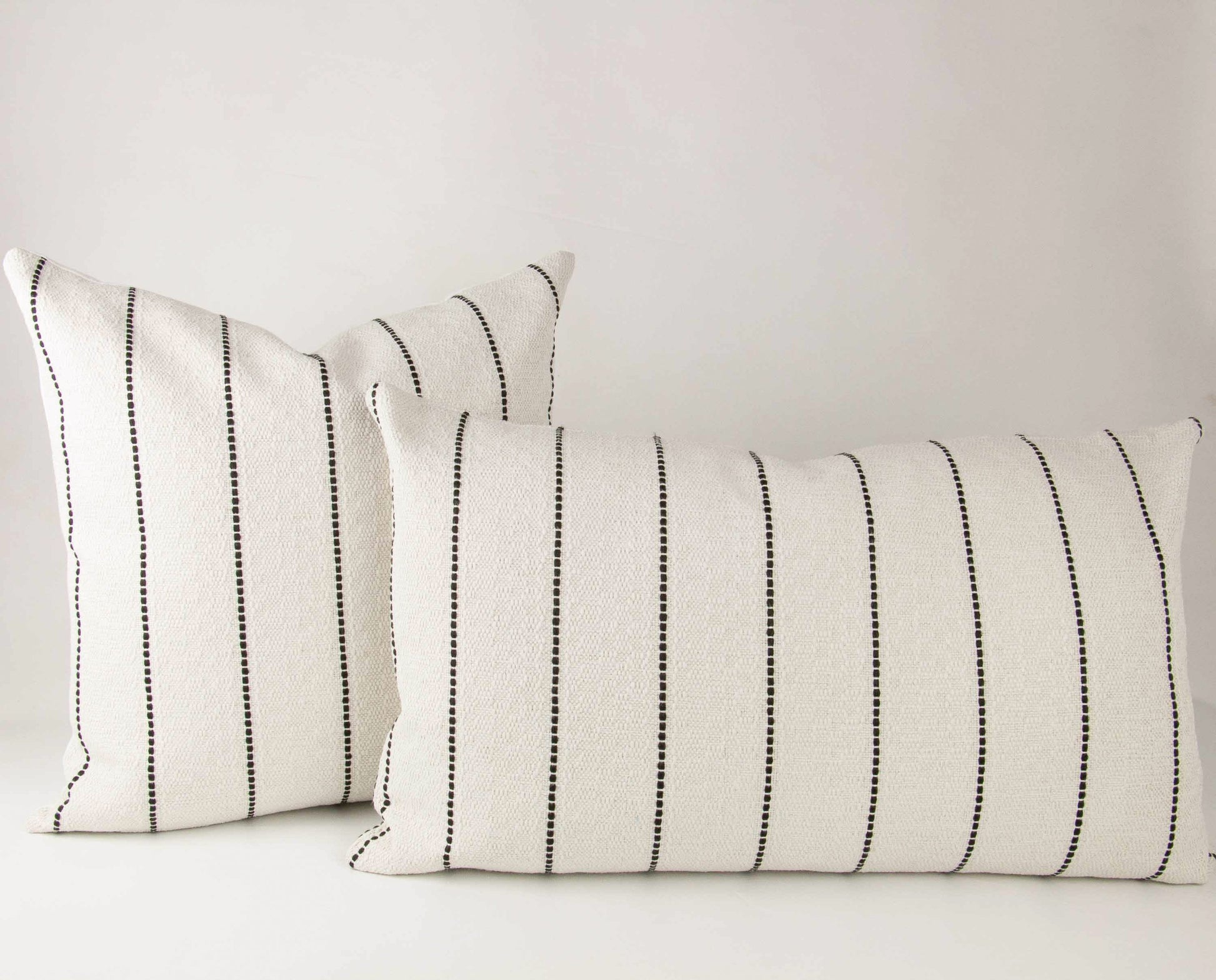 This pillow cover has been made with care using a modern cream & black striped fabric with tons of delicious texture. The designer striped fabric is made from 100% olefin, a high performance fabric that is stain resistant.