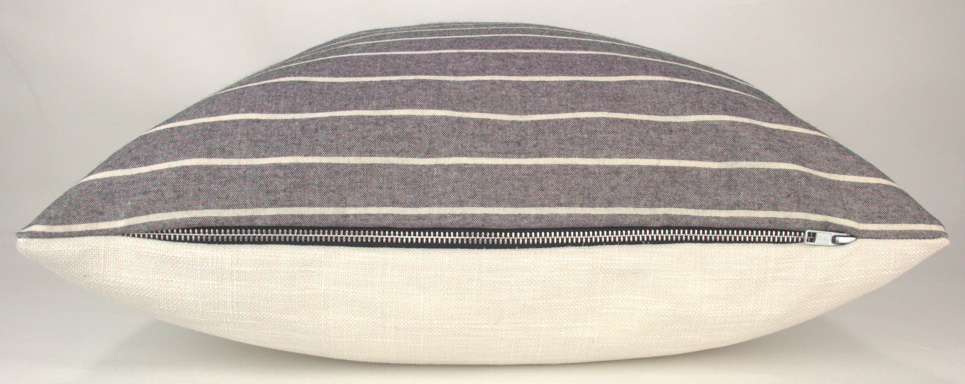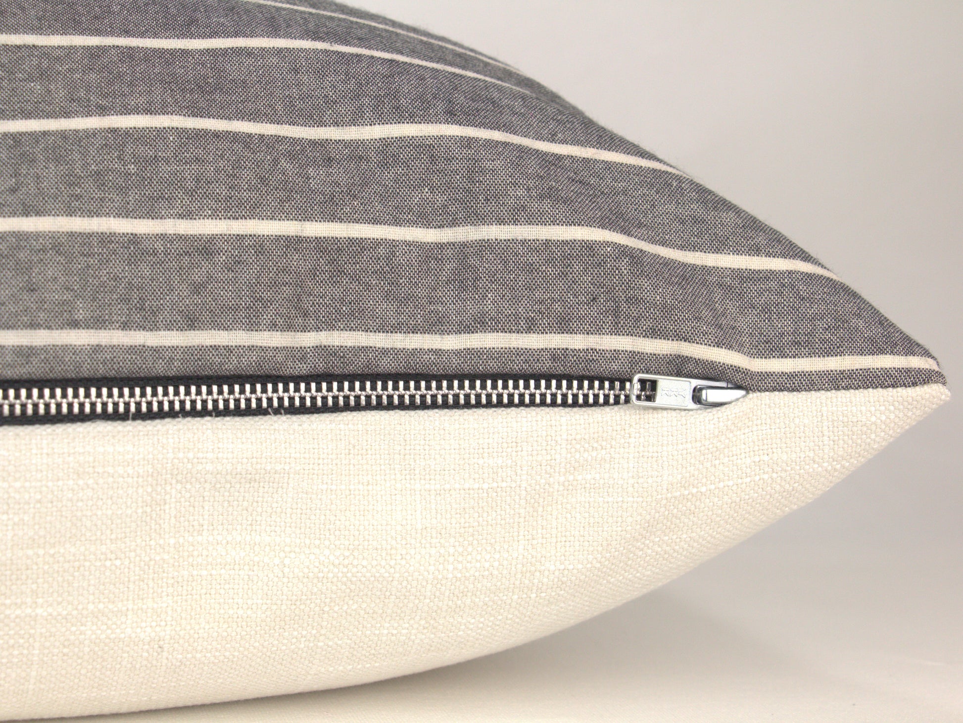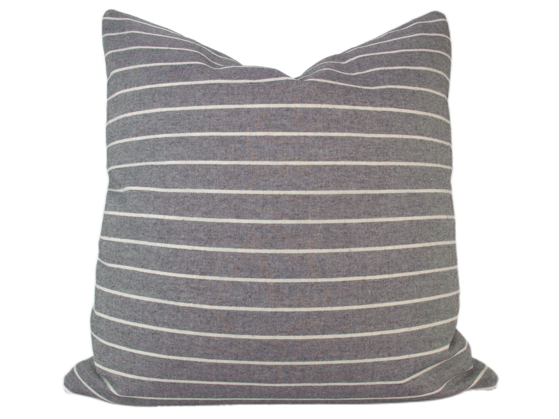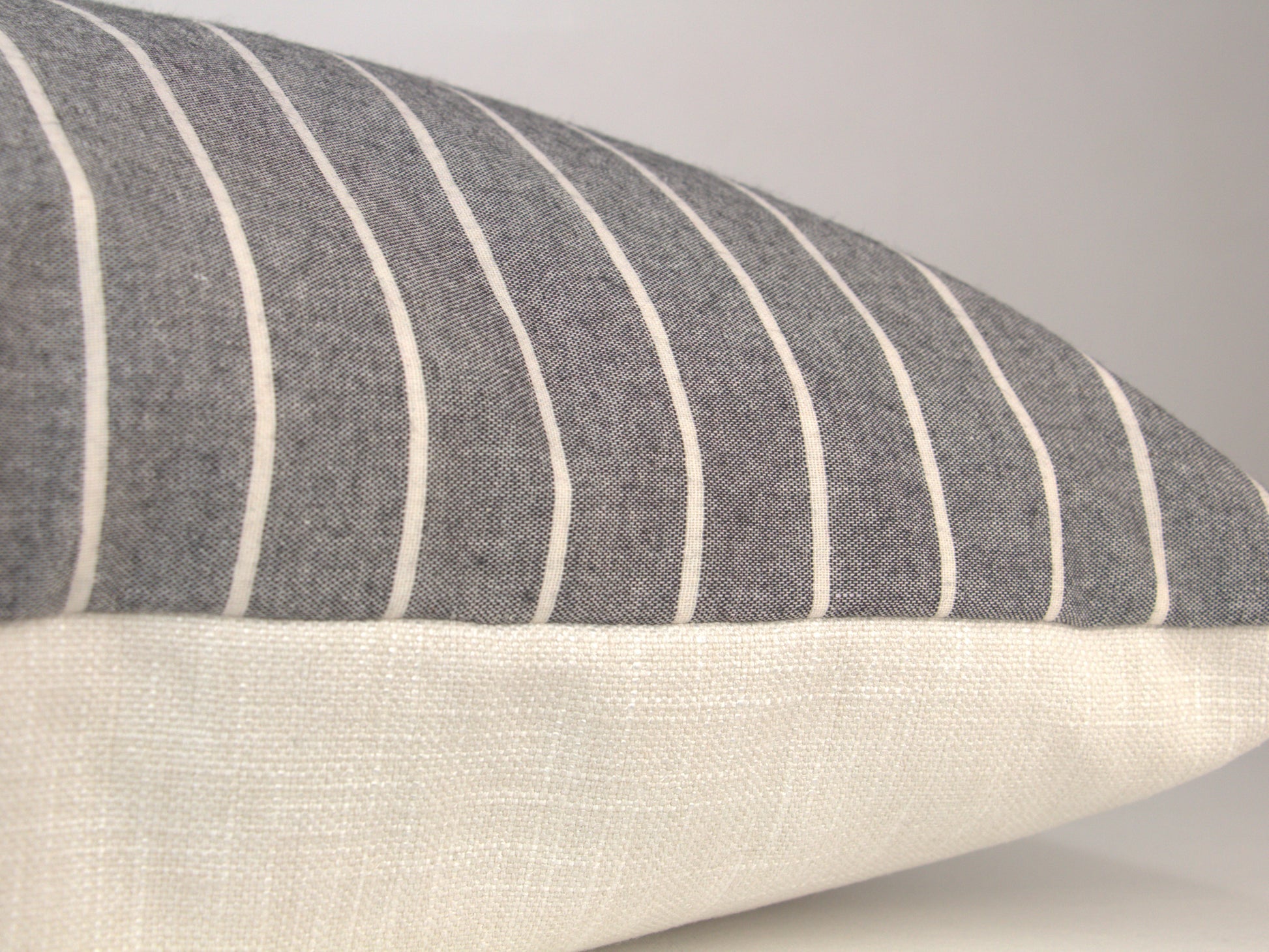 This pillow cover has been made with care using a grey & cream striped fabric. The soft chambray fabric adds a casual, relaxed feel to any space.