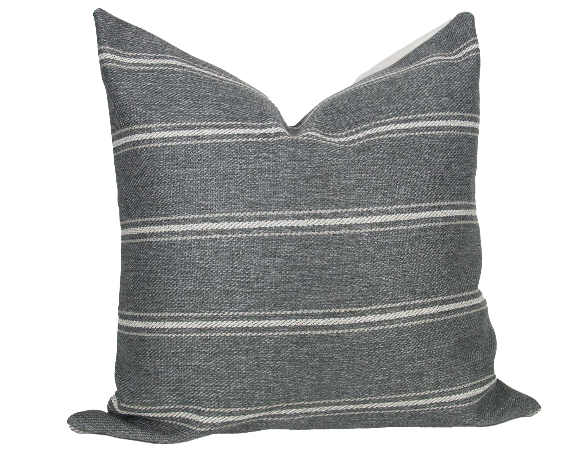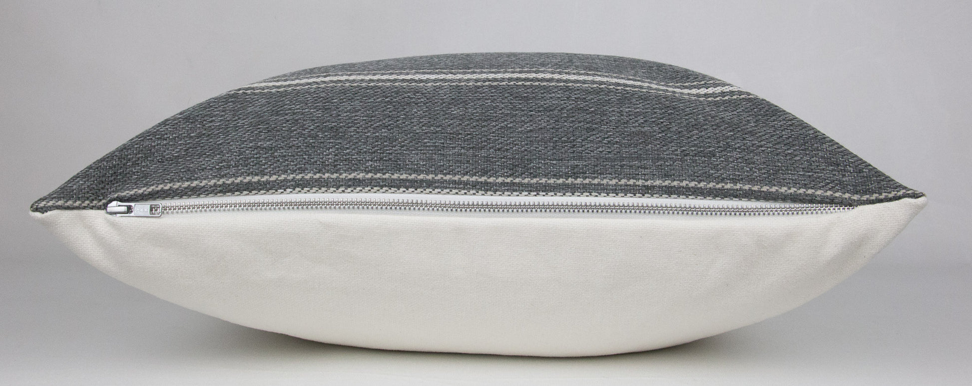 This 20x20" pillow cover has been made with care using a woven grey striped fabric with tons of delicious texture. The designer striped fabric is made from 100% olefin, a high performance fabric that is stain resistant.