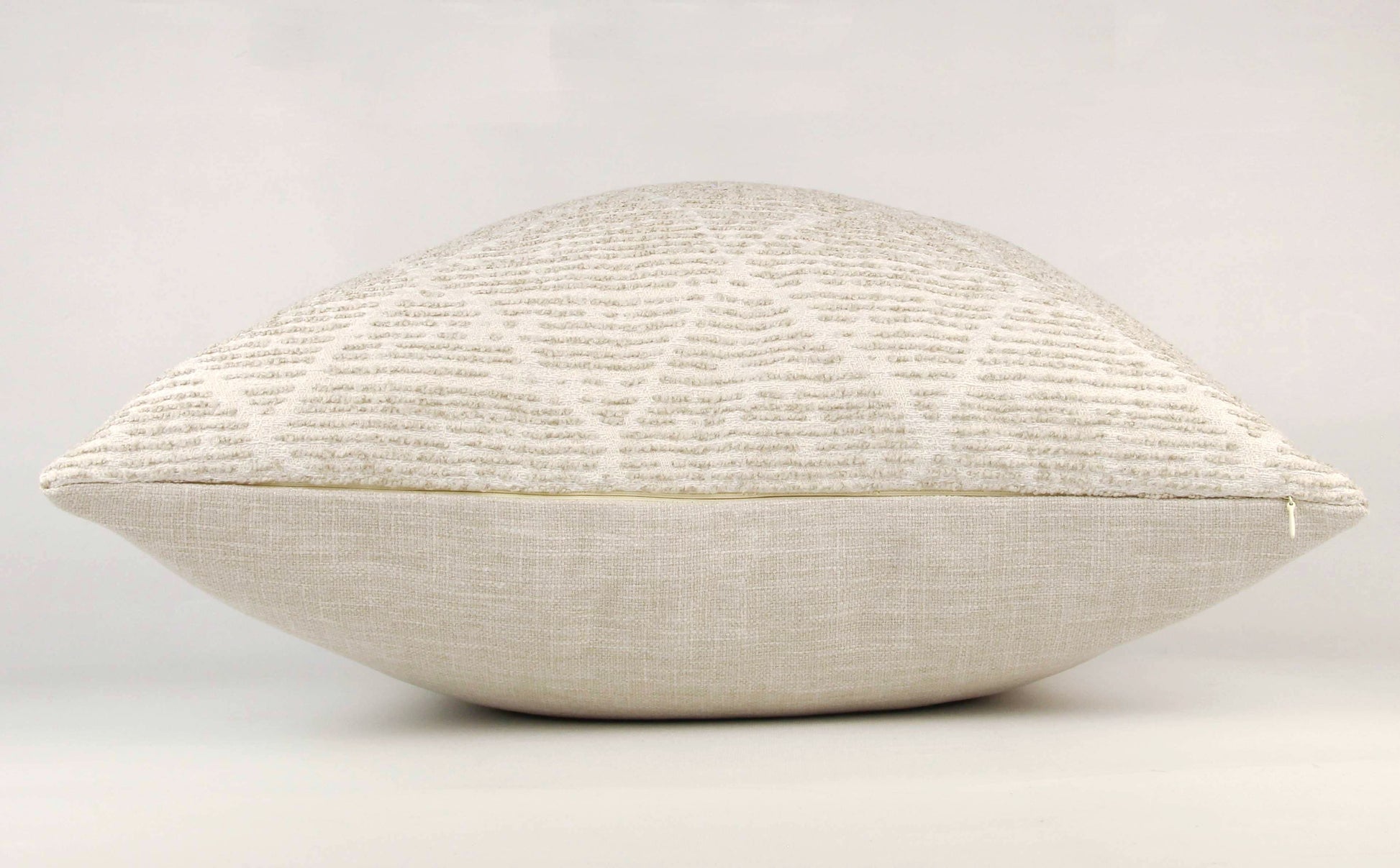Crafted with care, this ivory and beige pillow cover features cozy fabric in a subtle diamond pattern, adding textural interest to any decor. It's soft neutral tones effortlessly complement any home, making it a versatile and stylish addition.