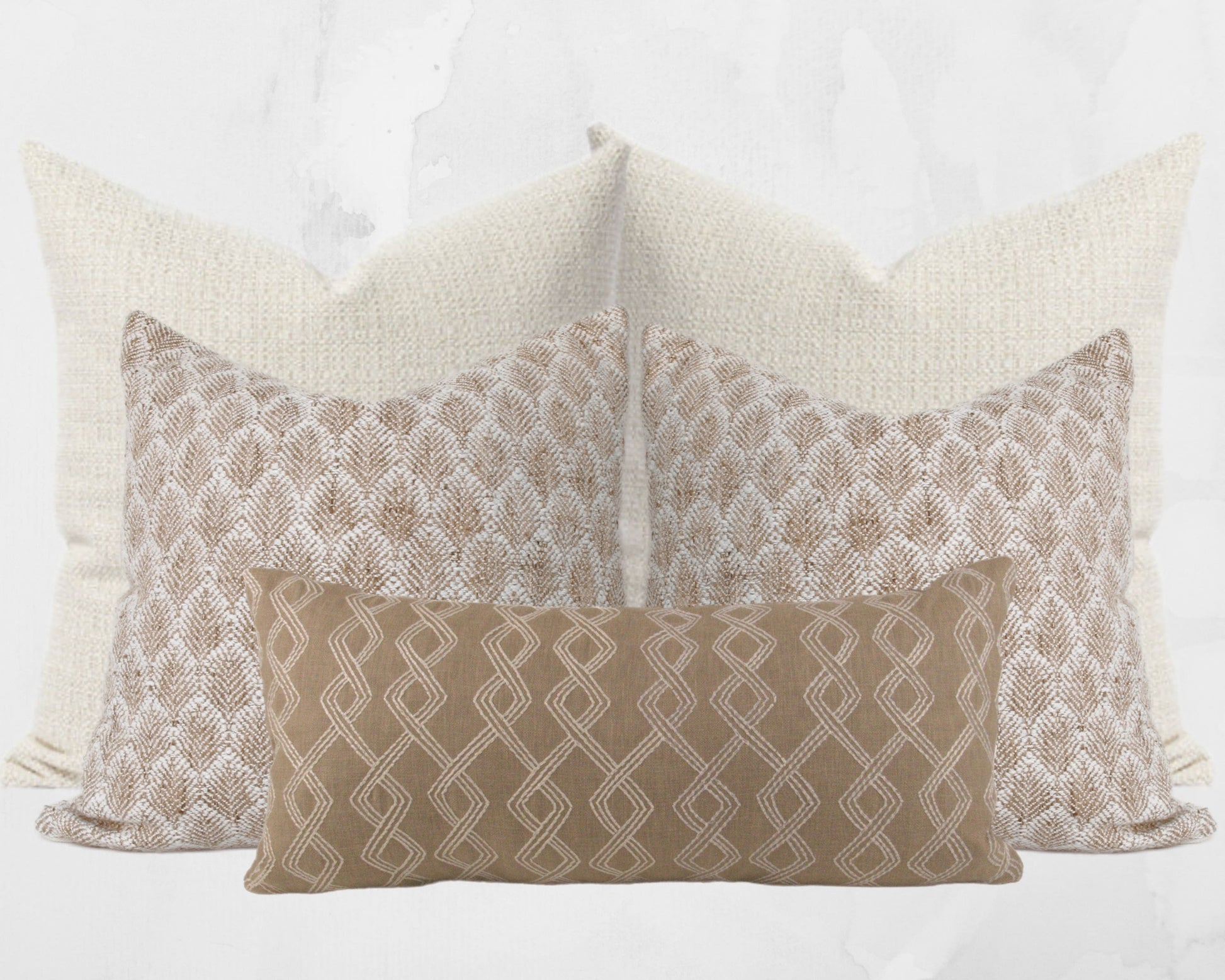 Beige, Tan & White Organic Leaf Pillow Cover (Size)